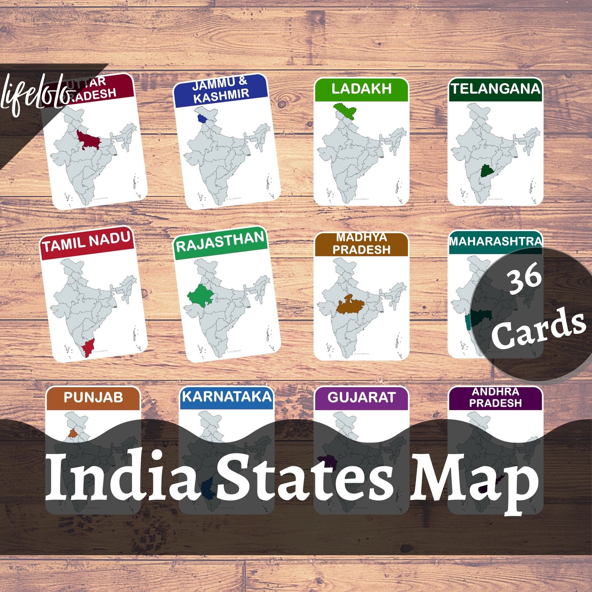 India Map 36 Flash Cards States of India Map of India With Etsy