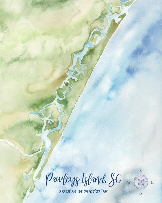 Wall Art Map Print Pawleys Island, South Carolina Etsy